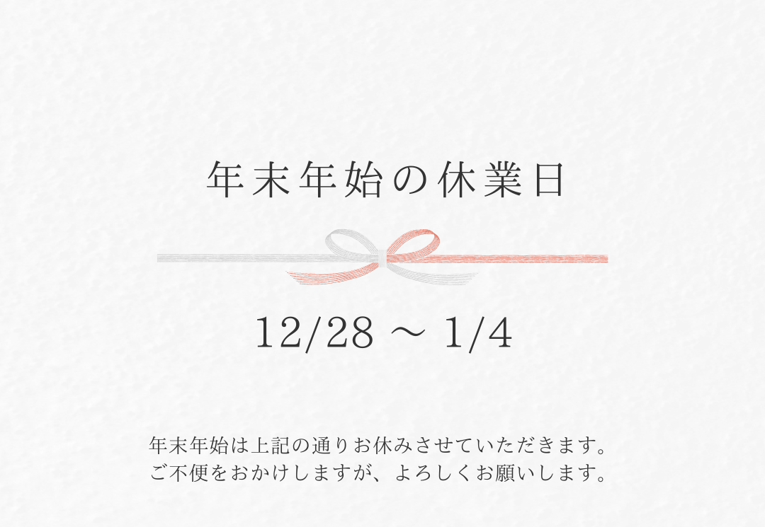 ※休業期間中のお問合せに関しましては、恐れ入りますが2026年 1月 5日以降にご対応をさせていただきます。